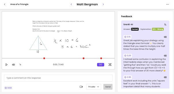 Secondly, teachers can monitor each student’s performance, listen to videos, and analyze feedback on a dashboard that is similar to other educational technology tools. Snorkl generates a score that reflects the student’s level of understanding, providing instant feedback for both students and teachers.