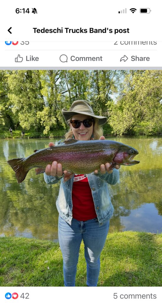 This is more of a PSA than fish porn. Grateful Dead wife sent me this picture, it’s of musician Susan Tedeschi with a big fish. Tedeschi was once part of a trivia question around here. The answer was Mark D’Alessio, one of this sector’s gems. I go to a lot of live music. If I can’t be outside, that’s the next best thing. In just the past few weeks I’ve seen some local acts, Sierra Hull, Ires DeMent, Paul McCartney, Jeff Tweedy, Tedeschi Trucks Band a couple of times, and Billy Strings (yes, my kids are away in college).