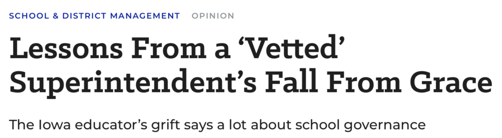 Rick Hess and I discussed the Des Moines superintendent debacle – immigration was in some ways the least of it.