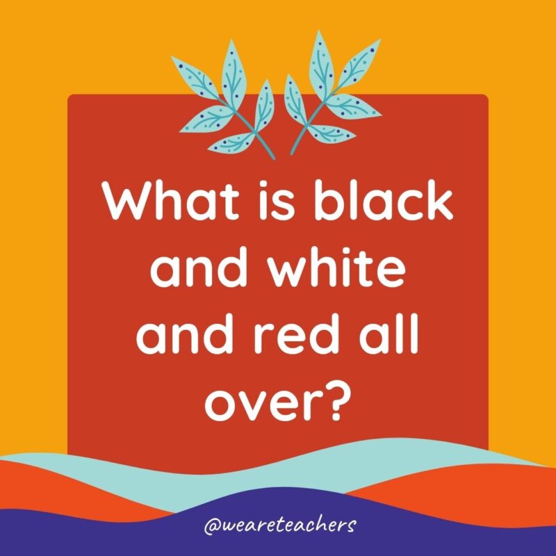 37. What is black and white and red all over?