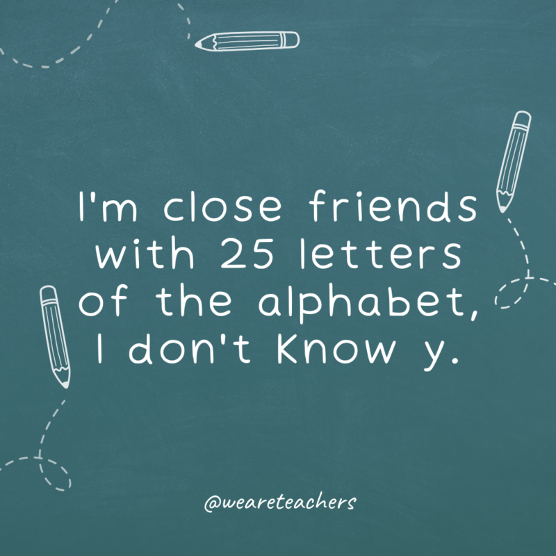 1. I’m close friends with 25 letters of the alphabet. I don’t know Y.