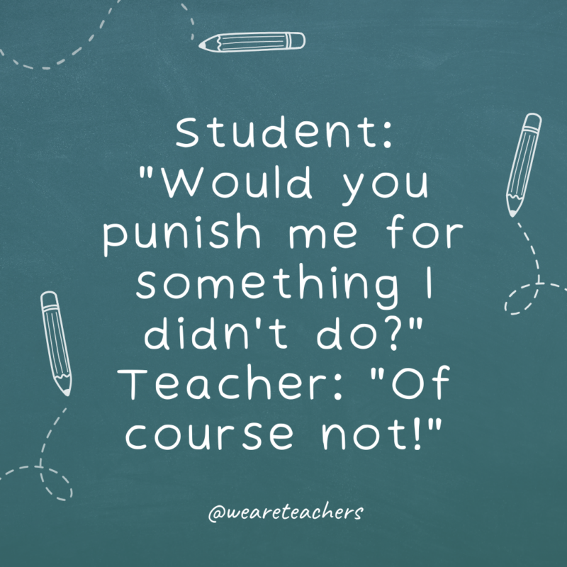 108. Student: “Would you punish me for something I didn’t do?” Teacher: “Of course not!”