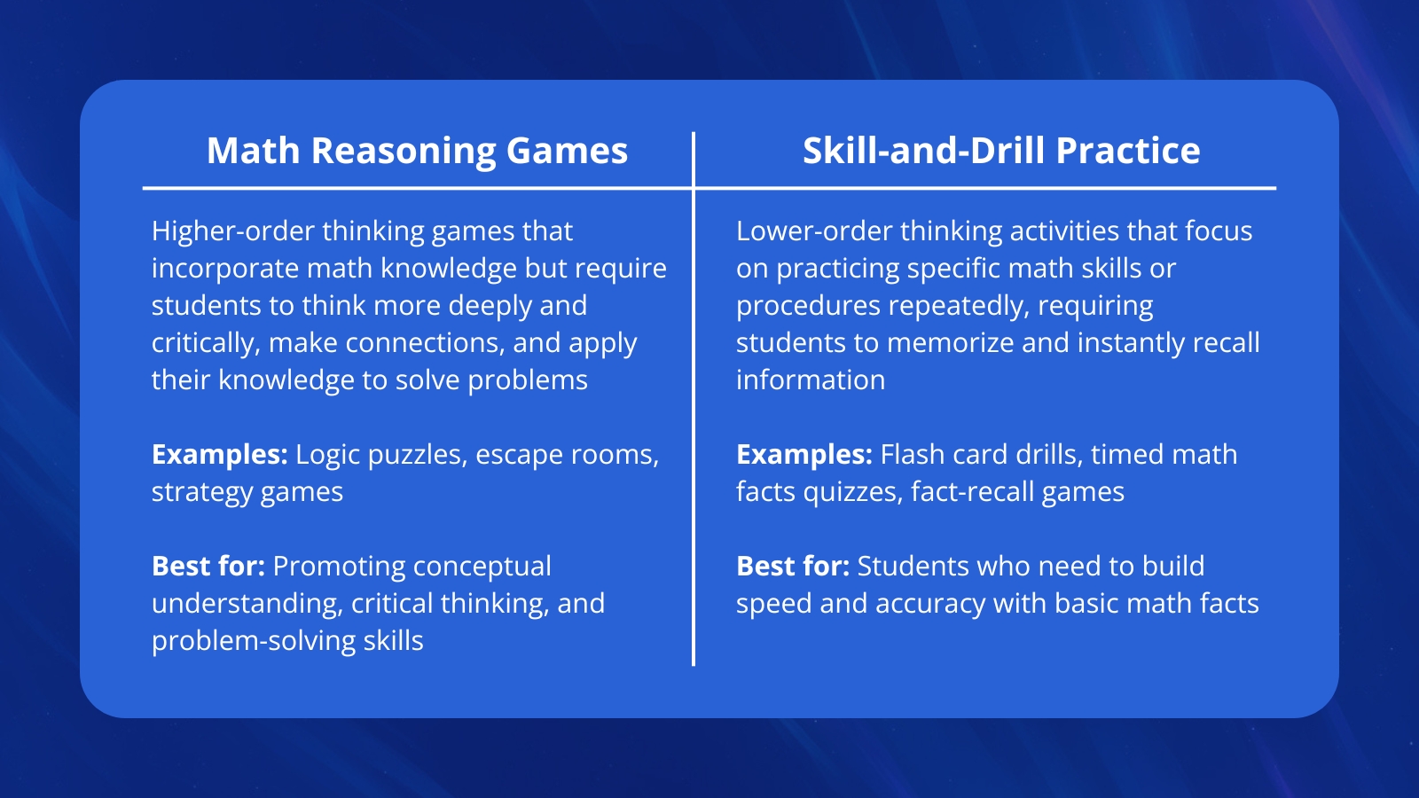 Math Reasoning Games vs. Skill-and-Drill Practice