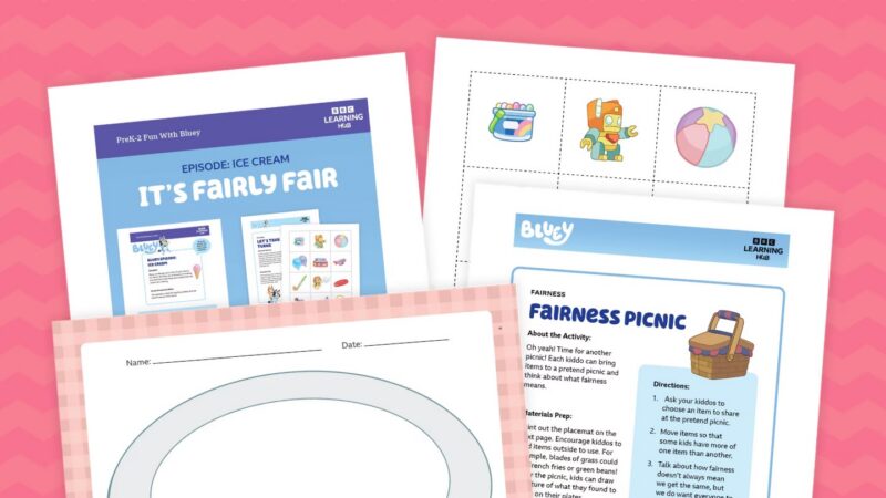 After watching: Kids can work on fairness and taking turns through playful sharing and simple decision-making. Sharing materials, waiting, and talking about fair versus equal gives kids a safe way to work through big feelings while staying connected to one another.