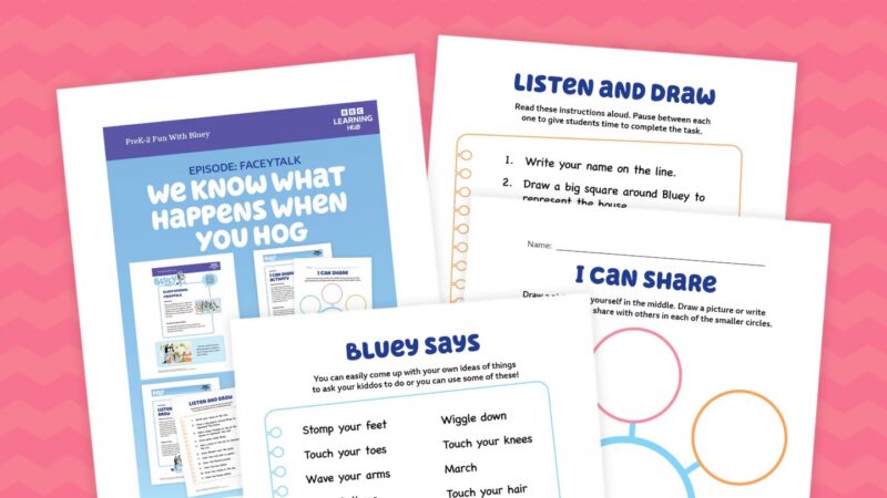 Bluey understands what we teachers already know to be true: Play matters, imagination matters, and big feelings matter. Bluey, a female blue heeler dog, navigates everyday family life with a sense of honesty and deep familiarity. Ordinary moments turn into extraordinary adventures, and kids see their own experiences reflected back at them with warmth and care. As an elementary teacher, I am always looking for ways to protect play while still giving kids something to build from. That’s why I was so excited when the BBC Learning Hub and We Are Teachers asked me to to review and try lessons from the Learning Hub’s new Bluey collection. There are 15 free episodes, each with activities that help foster kids’ thinking and feelings.