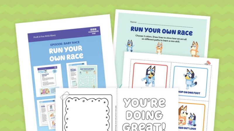 After watching: The “Baby Race” activity helps kids explore the idea of effort, encouragement, and moving at their own pace. Moving along different paths, tracing lines, and cheering each other on helps kids support one another rather than compete. It creates space for kids to talk about growth and celebrating progress in a supportive way.