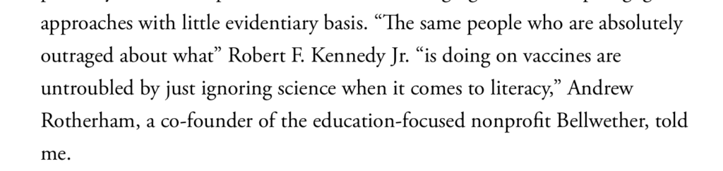 Here’s the thing: this work contains multitudes. There’s plenty to debate—even deep questions of values that can’t be resolved empirically so you can fight about those forever. We don’t have to make everything partisan or strident. The lousy job we do on literacy is a choice—a longstanding poor one.