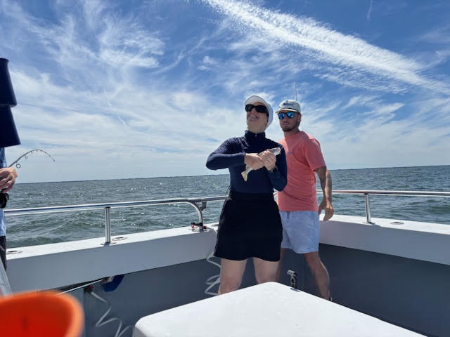 Below her 74 essay, you’ll find a couple of pictures of Rachel with fish off Rehoboth Beach, Delaware.