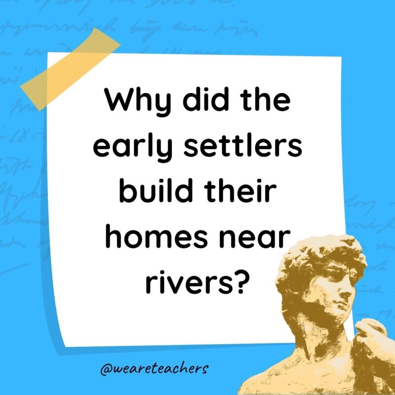 Why did the early settlers build their homes near rivers?
