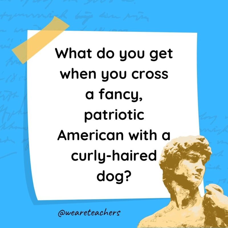 What do you get when you cross a fancy, patriotic American with a curly-haired dog?