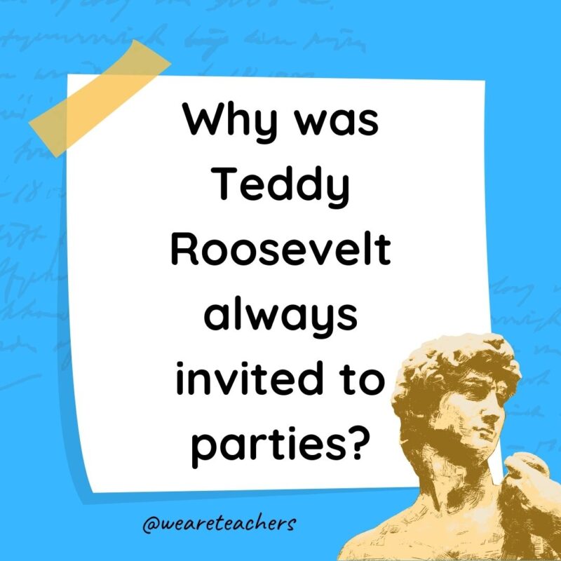 Why was Teddy Roosevelt always invited to parties?