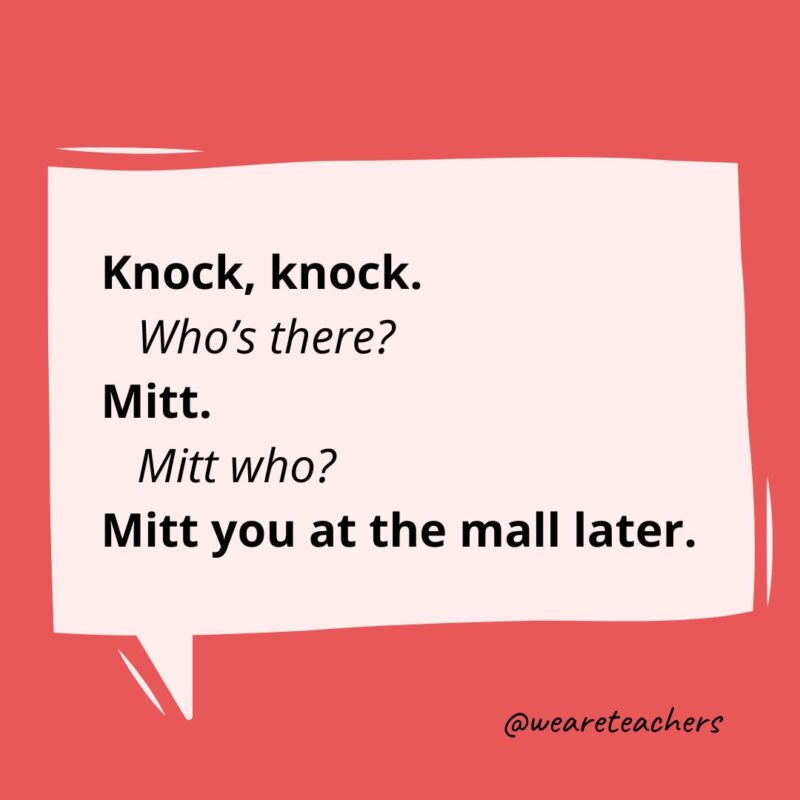 Knock knock. Who’s there? Mustache. Mustache who? I mustache you a question.- knock knock jokes for kids